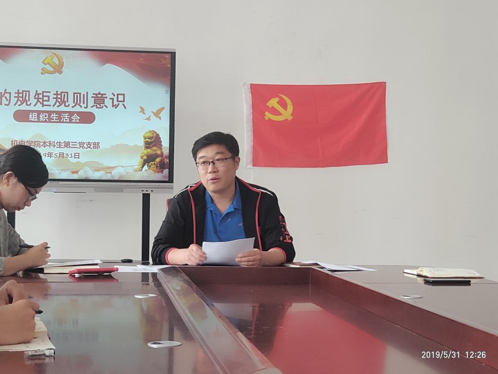根据学校纪委《关于开展第八届“廉政文化建设月”活动的通知》要求,5月31日,机电学院本科生第三党支部于机电楼518开展“我的规矩规则意识”专题组织生活会,本次组织生活会由党支部书记王作…