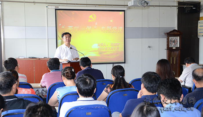 7月5日下午,校长马连湘以“七一讲话”为切入点,为机电学院、人事处、发展规划处、学报师生党员讲授“两学一做”学习教育专题党课。