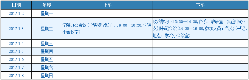 一周会议安排(1/2-1/8)