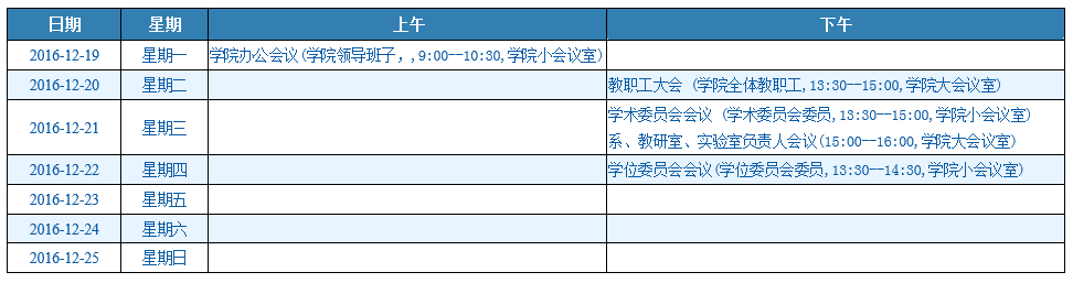 一周会议安排(12/19-12/25)