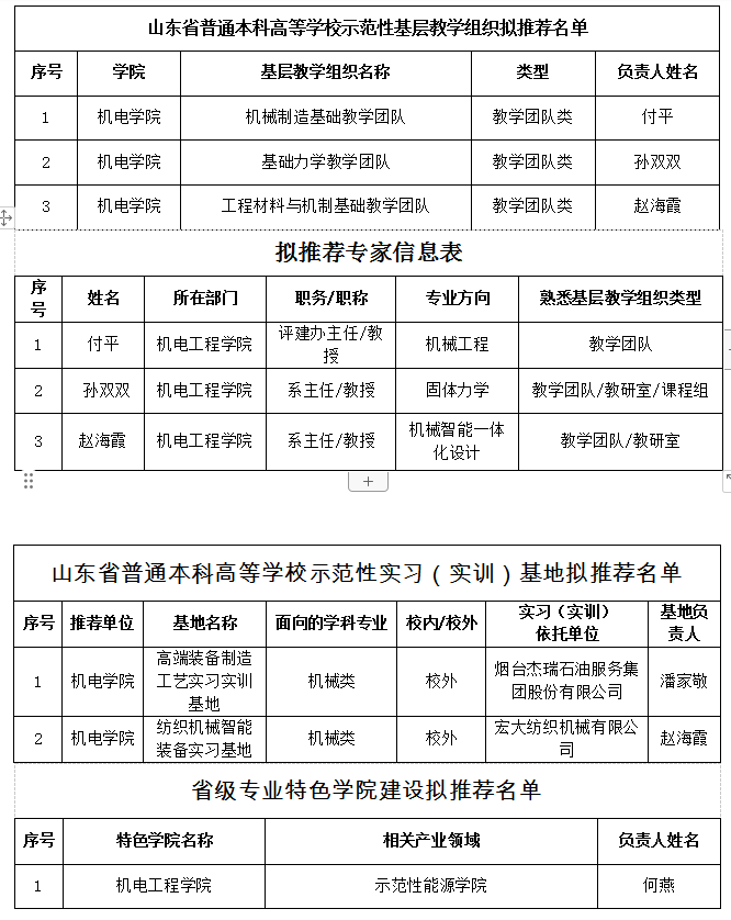 依据学校《关于开展省级未来技术学院、专业特色学院、示范性基层教学组织、实验教学示范中心、虚拟仿真实验教学示范中心、示范性实习(实训)基地、“111”计划建设申报的通知》,学院组织符合条件的教师申报,经学院初审,现拟推荐以下项目类别和人员,进入学校评审环节,并进行公示。公示期三天(2023年12月4日-12月6日),如有异议,请在公示期内向best365体育官网平台教学办反映。