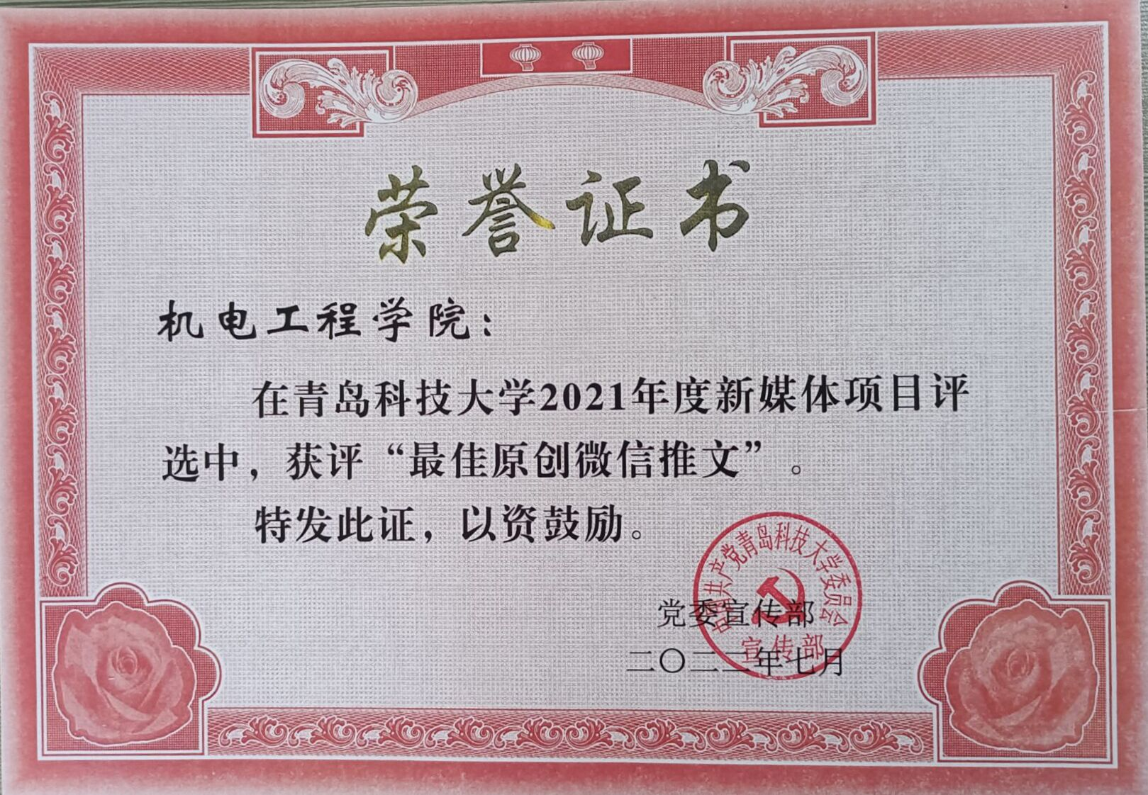 在中国共产党成立101周年之际,7月1日下午,best365体育官网平台2022年党建与思想政治工作会议暨“光荣在党50年”纪念章颁发仪式在崂山校区第二报告厅隆重召开。会议表彰了2021年度思想政治工作先进集体、先进个人、以及优秀新媒体项目,best365体育官网平台荣获多项荣誉。