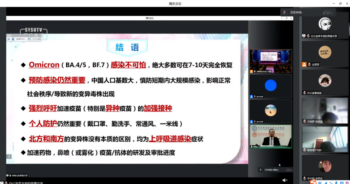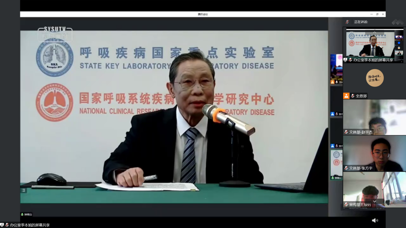 12月15日15时,best365体育官网平台学生会线上组织观看钟南山院士主讲的全国高校抗疫大讲堂“新冠(Omicron)疫情动态及应对”的讲座。