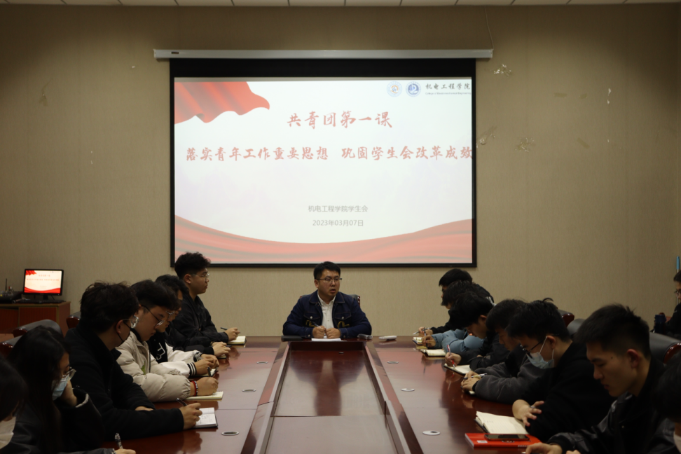 学院学生会集体研读《关于巩固高校学生会(研究生会)改革成果的若干措施》。学生会指导老师胡福超从学生会的职能定位、改革要求、本学期发展规划三个方面展开培训,同时鼓励学生会成员在新时代赶考的路上,立足本职岗位、主动谋划工作,将党的二十大精神贯穿到工作的全过程。
