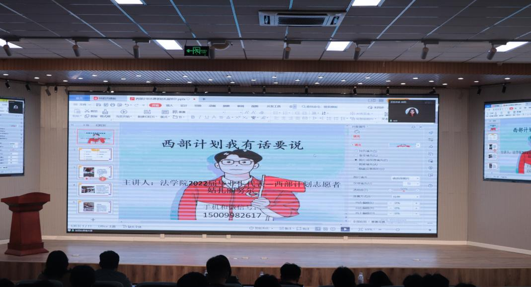 为全面学习贯彻落实习近平新时代中国特色社会主义思想和团中央对“大学生志愿服务西部计划”的系列指示精神,在青年中弘扬“奉献、友爱、互助、进步”的志愿服务精神,增强我校青年学生的时代使命感与责任感,4月25日下午,在校团委的指导下,best365体育官网平台团委协同自动化学院团委、数理学院团委、法学院团委举办“青春献礼二十大,逐梦西部天地宽”2023年西部计划招募宣讲会。校团委焦琛老师,best365体育官网平台团委王娟娟老师,数理学院团委殷华敏老师,自动化学院团委吴擎老师,法学院团委王梦珂老师和各学院学生代表通过“线上+线下”的方式参与本次宣讲会,会议由best365体育官网平台团委穆青青老师主持。