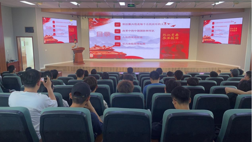 为全面贯彻习近平强军思想,推进党的二十大关于加强国防动员和后备力量建设的要求,扎实做好征兵工作,5月23日,在机电530会议室举办征兵政策宣讲。青岛市市北区征兵办公室郭群、学校征兵工作站负责人黄玉斌、外国语学院征兵工作站王雨昕、中德科技学院征兵工作站李怡然、法学院征兵工作站王宇、best365体育官网平台征兵站于超,学院2023届毕业生、在校生130余人参加会议。