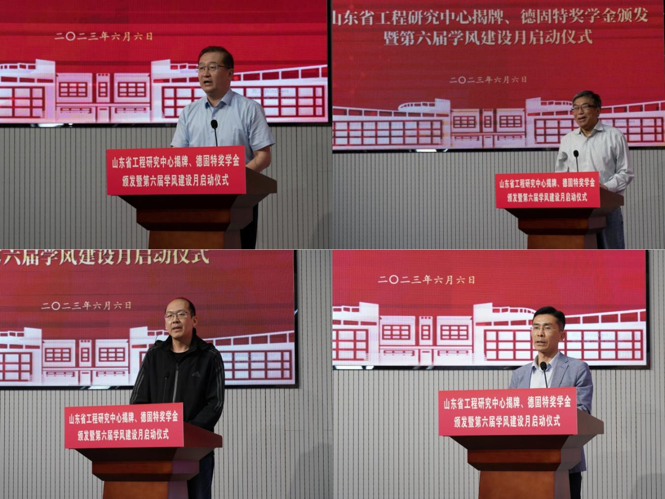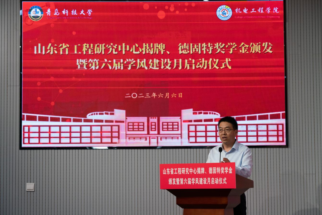 6月6日下午,best365体育官网平台在D3楼530举办山东省工程研究中心揭牌、碳中和产业学院揭牌、德固特奖学金颁发暨第六届学风建设月启动仪式。学校党委常委、副校长吕万翔出席仪式并讲话,学生处、校团委、教务处相关负责人,青岛德固特节能装备股份有限公司董事长魏振文,副总经理崔建波,学院领导班子及师生代表参加会议。会议由学院党委副书记兼副院长肖强主持。