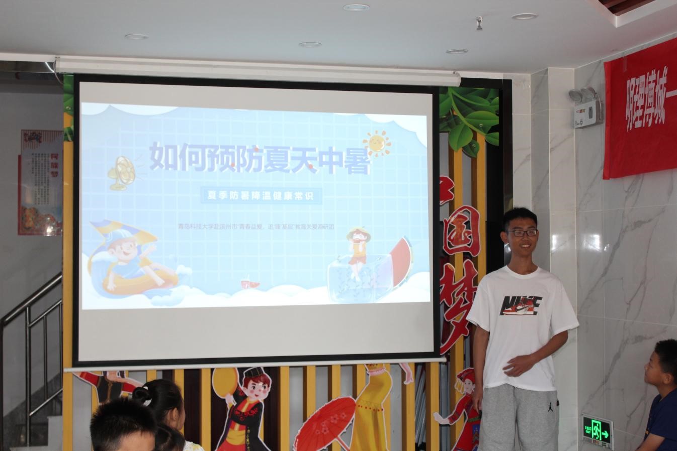 调研团成员泥嘉芮为孩子们带来“预防中暑”专题课堂。泥老师通过图文并茂的方式向学生们展示了中暑的真实案例,并解释了热应激对人体的影响。这样一方面可以引起学生的关注,增加他们对中暑的认识,另一方面也能让他们更易于理解预防中暑的重要性。她重点讲解了中暑的预防方法。向学生们详细解释了防暑要点,包括避免长时间暴露在高温环境下,注意室内外温差,合理服用清凉饮品,适时休息等。我使用实际案例和图片来说明这些预防措施的实施方法,并强调了预防中暑的必要性和可行性。