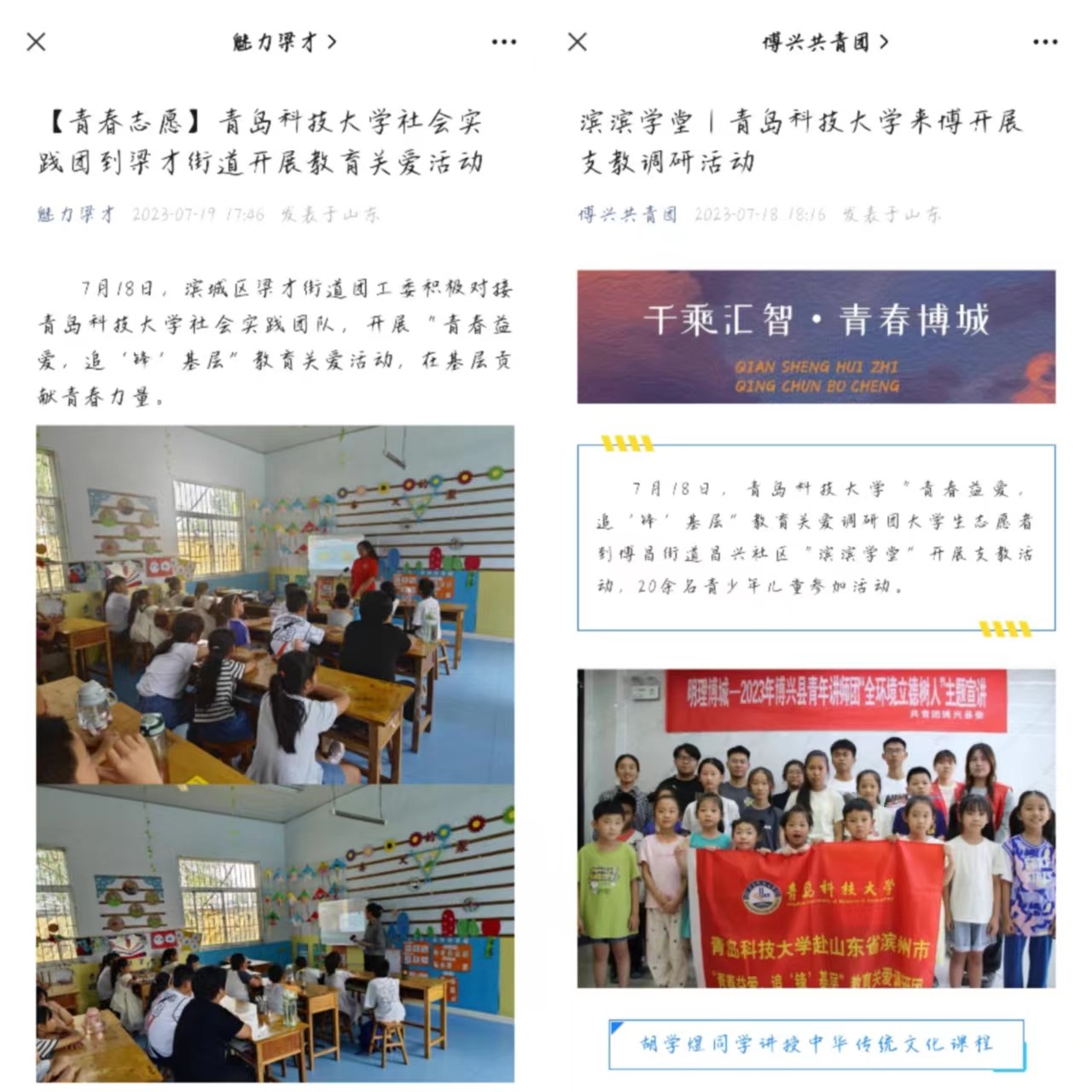 为进一步提高少年儿童的科学文化素养,呵护少年儿童健康成长。7月18日,best365体育官网平台赴滨州市“青春益爱,追‘锋’基层”教育关爱调研团对接滨州市滨城区团区委、博兴县团县委开展大学生乡村教育社会实践,举办了传统文化宣讲,手工制作,智力游戏,科普课堂等特色课程。