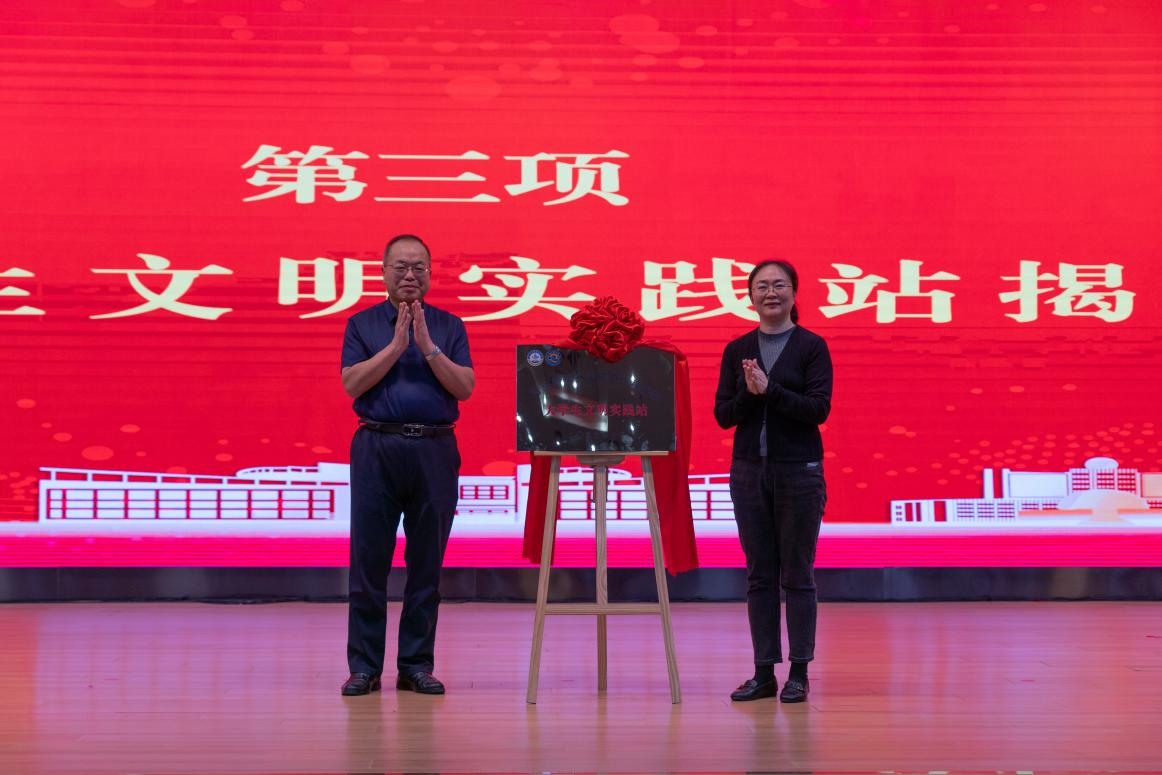 学校党委常委、副校长丁林与best365体育官网平台院长何燕为学院大学生文明实践站揭牌。