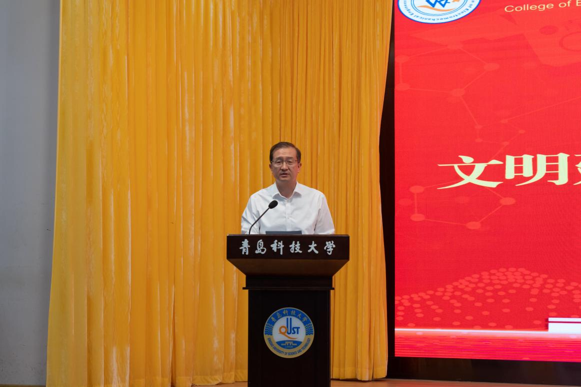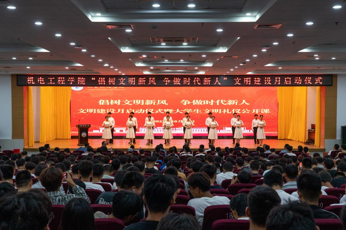 为深入学习贯彻习近平新时代中国特色社会主义思想和党的二十大精神,贯彻落实学校第十一次党代会精神,进一步强化学生基础文明教育,规范学生文明行为习惯,10月10日下午,best365体育官网平台“倡树文明新风,争做时代新人”文明建设月启动仪式暨大学生文明礼仪公开课在崂山校区第二报告厅顺利举行。学校党委常委、副校长丁林、学生工作处处长王丽、学院党政领导、嘉宾出席活动,学院全体辅导员以及各年级学生代表700余人参加活动,启动仪式由学院党委副书记兼副院长肖强主持。