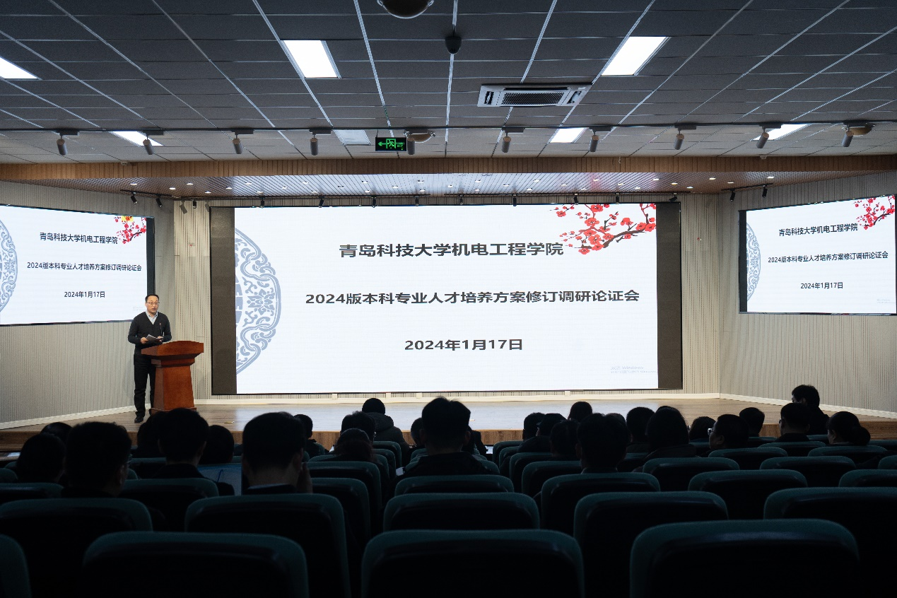 1月17日,机电学院召开2024版本科专业人才培养方案修订调研论证会,邀请来自高校、企业、用人单位、一线师生的代表参加,会议由副院长李剑光主持,青岛理工大学教务处副处长杨勇、青岛大学机电学院副院长王德昌、青岛理工大学艺术学院副院长王春鹏、山东科技大学机械专业负责人杨俊茹、青岛顺安热电有限公司总经理周赞庆、青岛国轩电池有限公司研究院院长王滨、青岛酷飞新材料有限公司总经理孙常伟、青岛科捷机器人有限公司总经理徐鹏、青岛永钊新材料科技有限公司总经理吕明利、青岛城投中程集团部长李大强、中科院青岛生物能源与过程研究所研究员黄青山、青岛海泰科模具有限公司经理单士友出席。校内参加的有机电学院院长何燕,副院长张斌、杨化林、张卫锋,以及学院各系室主任、专业负责人、实验平台主任,以及教师学生代表,共40余人。