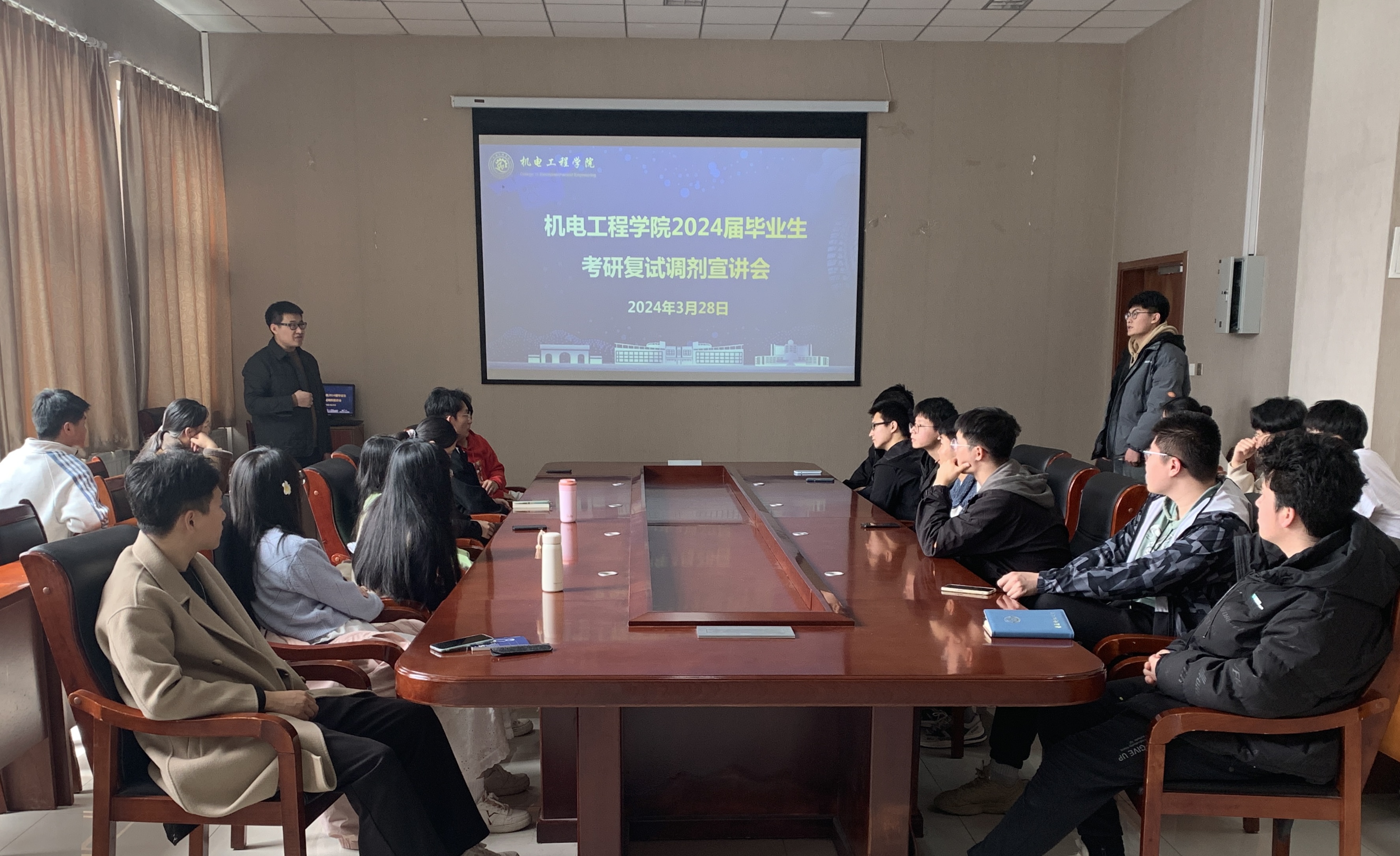 3月28日,best365体育官网平台2024届毕业生考研复试调剂宣讲会在机电楼518会议室举办。副院长刘治明参加会议并进行复试调剂指导,毕业班辅导员、2024届考研学生代表参加宣讲会。