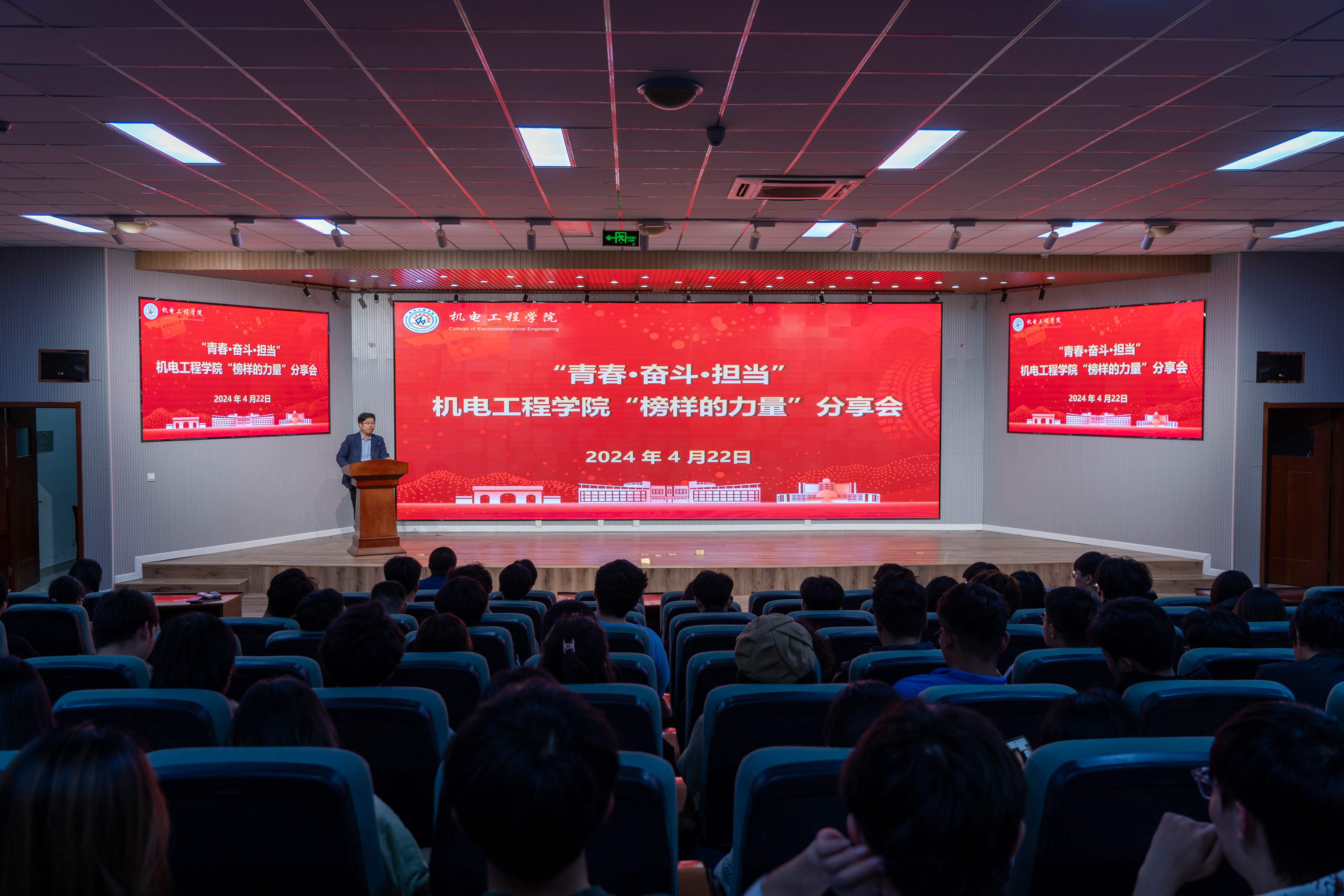 值五四青年节来临之际,为深入学习贯彻落实习近平总书记关于青年工作的重要论述精神,积极引导青年学生树立远大理想,明确使命担当,4月22日,“榜样的力量”分享会在机电楼530会议室召开。best365体育官网平台党委副书记兼副院长杨小明、辅导员于超、穆青青、杜康参加分享会,学生会骨干、融媒体中心全体成员、易班工作站全体成员、2023级全体班长、团支书、副班长等200余人一同参会。