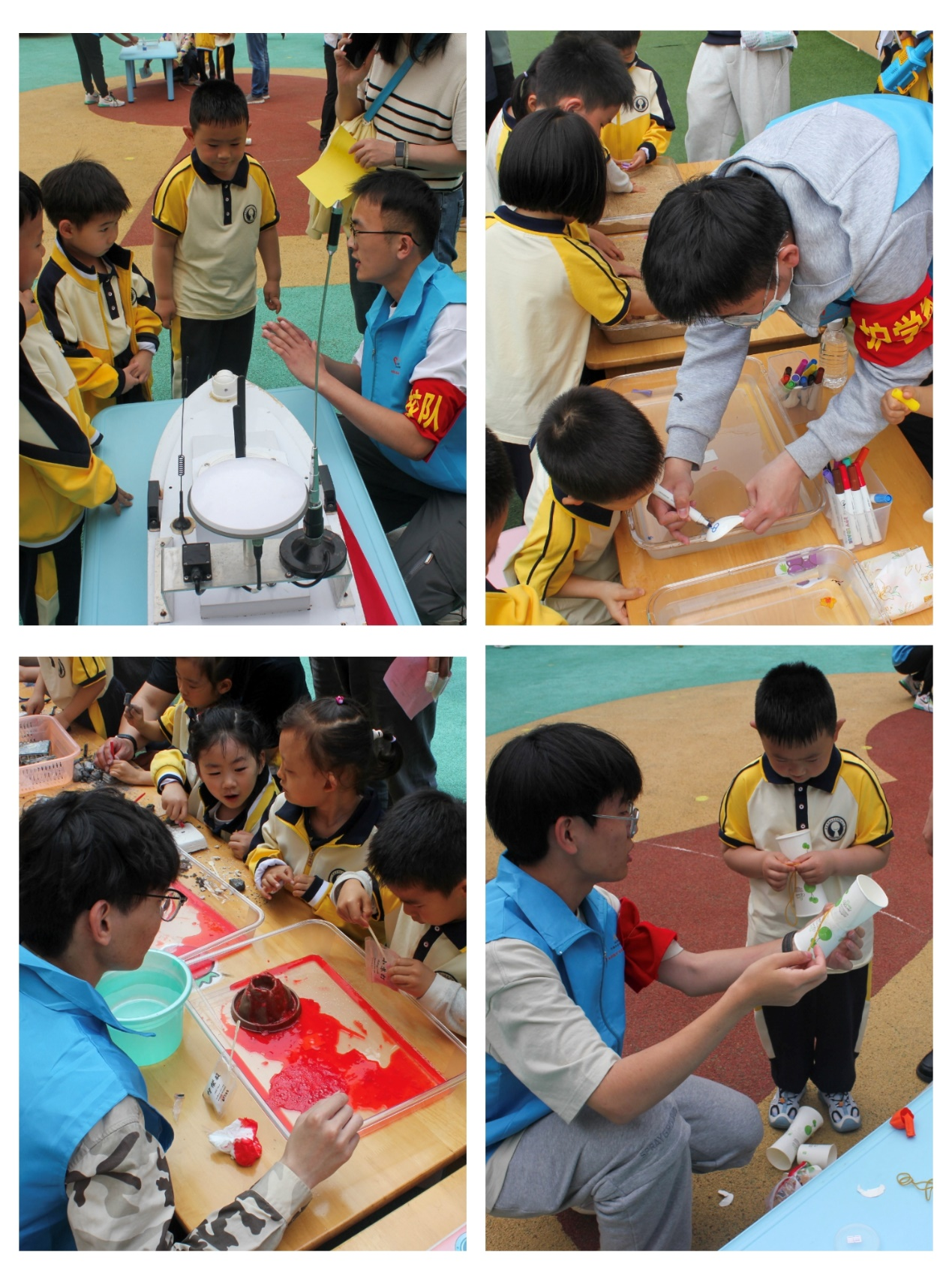 来自best365体育官网平台青苗科技创新团队成员的志愿者们在学院教师的精心组织下,小朋友们井然有序地排队参观了一系列充满科技魅力的项目。他们首先参观了无人艇模型,随后进行了空气炮实验,接着又动手制作了纸杯飞机,体验了蜡烛吸水等科学小实验。在这一系列活动中,志愿者们耐心细致地为小朋友们讲解了其中的科学原理和知识,包括无人艇的精巧构造和工作原理,空气炮的内部结构以及运作机制,气体热胀冷缩的自然规律。每个小实验都引发了小朋友们浓厚的兴趣,他们聚精会神地观察实验现象,动手进行实践操作,并积极向志愿者们提出自己的疑问。现场氛围既热烈又活泼,充满了孩子们对科学知识的渴望和探索精神。