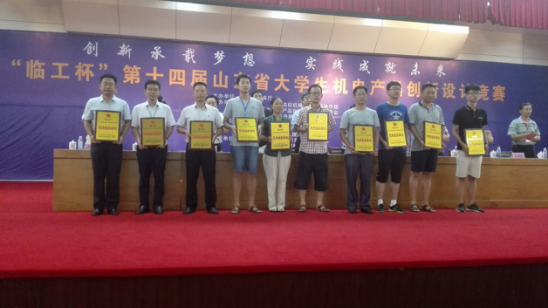 8月6日至8日,由山东省教育厅主办、临沂大学承办的“临工杯”第十四届山东省大学生机电产品创新设计竞赛在临沂大学举行。我校机电学院院长、山东省机电产品创新设计竞赛组委会副主任委员何燕教授带队参加比赛,并在闭幕式上代表组委会做总结发言。经过两天的激烈角逐,我校申报的68项作品中,有64项获奖,其中一等奖5项、二等奖15项,三等奖44项,获“科明奖学金”1项、“昭阳奖学金”1项。何燕、李锋、闫青、郭建章、杨化林、张卫锋、唐跃、李淑江、王宪伦、王冠中、胡德栋、田绪东等12名老师获“优秀指导教师奖”,学校获评“优秀组织单位奖”。