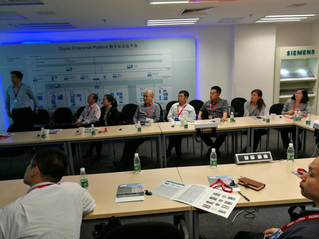 陈克正一行听取了该公司相关负责人就西门子公司的发展历程、企业文化及SEWC主要研发产品和生产任务、应用领域、工业4.0制造业数字化的理念,以及如何实现产品的管理、产品研发、生产到物流配送全过程的数字化等的介绍。