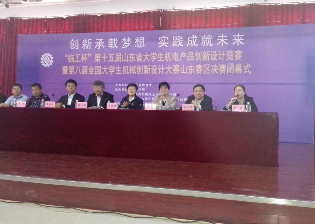近日,由山东省教育厅主办、德州学院承办的“临工杯”第十五届山东省大学生机电产品创新设计竞赛暨第八届全国大学生机械创新设计大赛山东赛区决赛在德州学院举行。best365体育官网平台院长、山东省机电产品创新设计竞赛组委会副主任委员何燕教授带队参加比赛,并在闭幕式上代表组委会做总结发言。经过两天的激烈角逐,我校申报的33项作品中,有29项获奖,其中一等奖4项(高密校区机电系获得一等奖1项)、二等奖9项,三等奖16项,其中国赛组进入决赛2项,1项获得省赛一等奖,并进入国赛的选拔。我校获评“优秀组织单位奖”。
