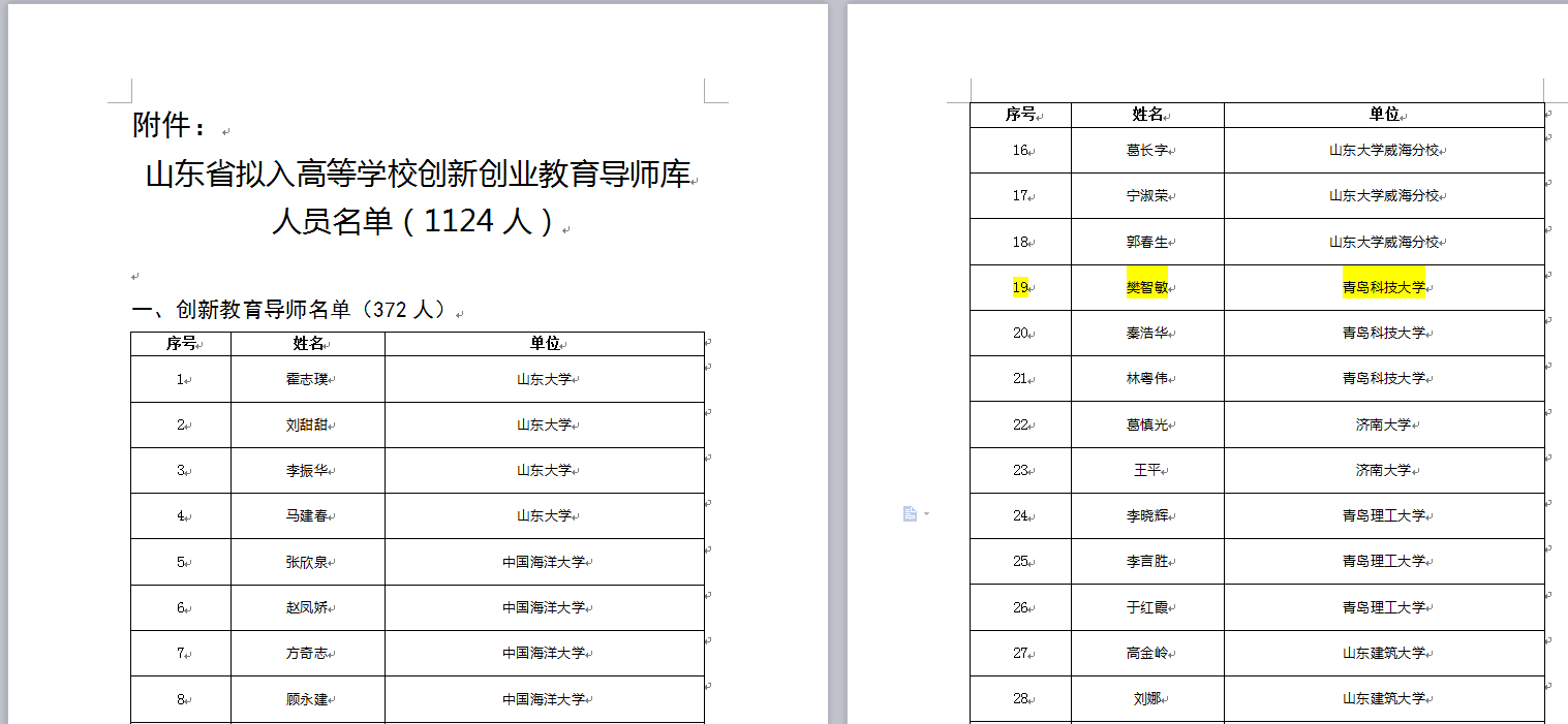 近日,山东省教育厅对山东省第二批拟入高校创新创业教育导师库导师人选名单进行公示,机电学院樊智敏教授榜上有名。