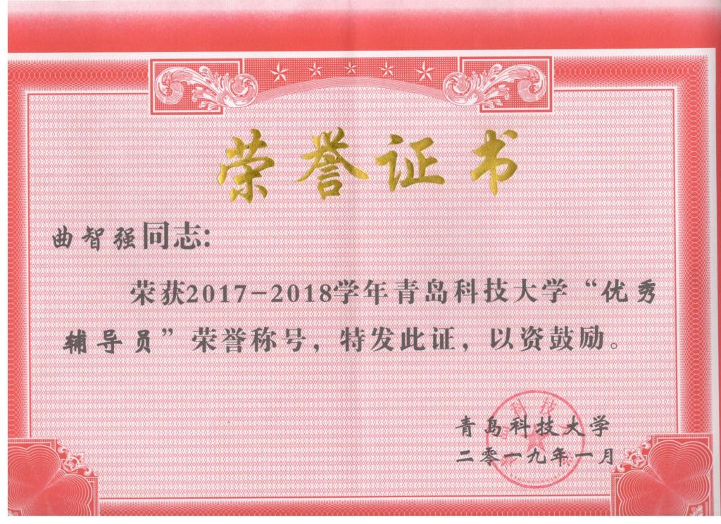 近日,在学校公布了2017-2018学年best365体育官网平台优秀辅导员名单,机电学院曲智强老师荣获校优秀辅导员。