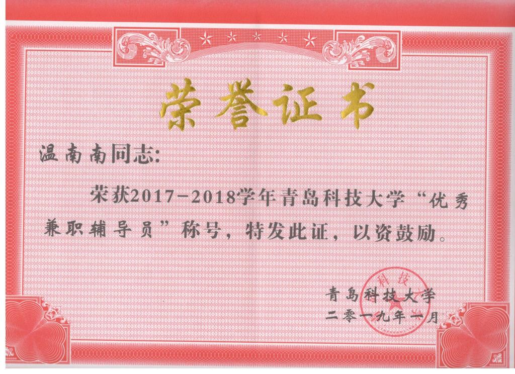 另有,秦鹏涛、温南南、张作良被评为校优秀兼职辅导员称号。