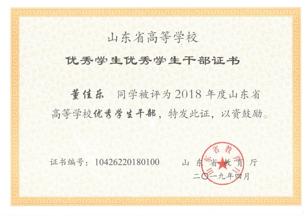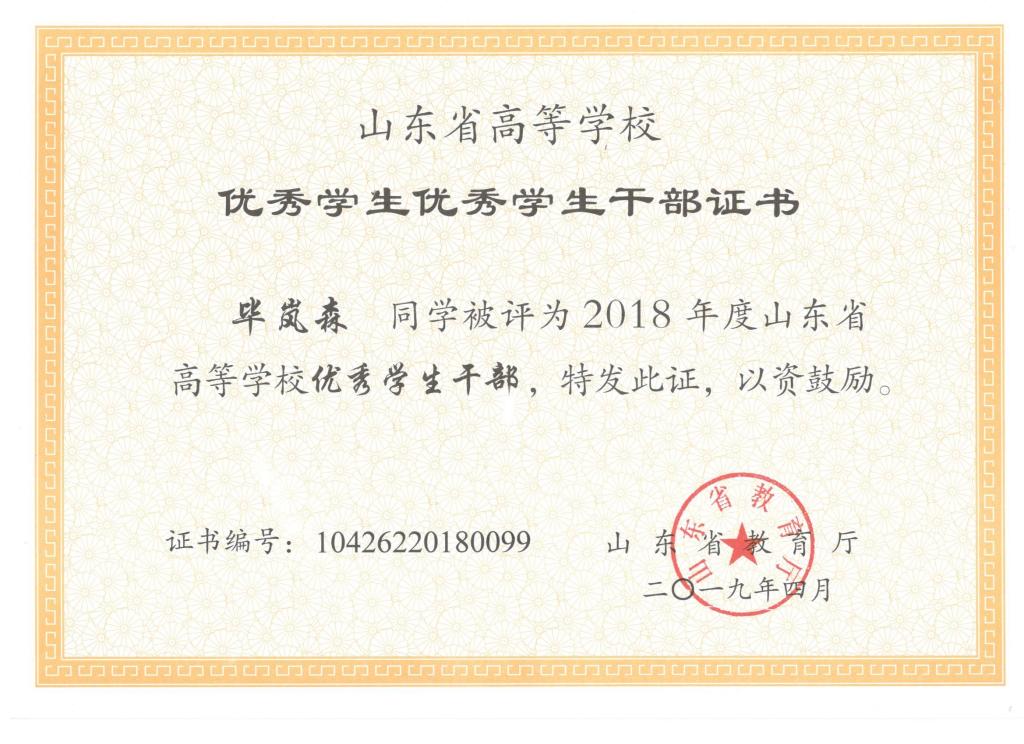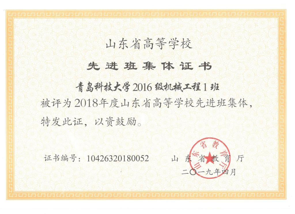 我院刘东喜、张旭、刘冰桀、范世缘同学被确定为山东省高等学校优秀学生,毕岚森、董佳乐、葛泉志被确定为山东省高等学校优秀学生干部,机械实验161班被确定为山东省高等学校先进班集体。