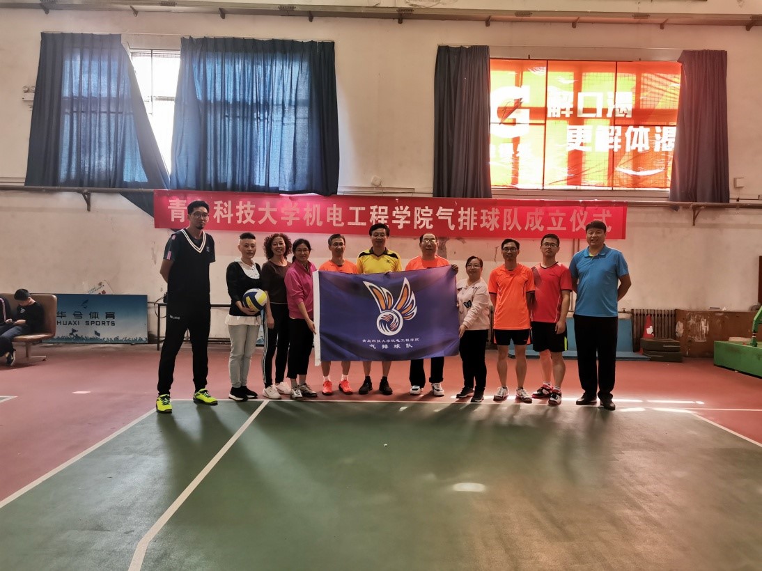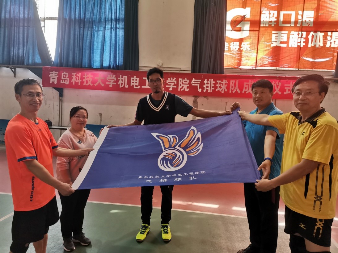 在机电学院教职工气排球队成立组织、筹备中,学院分工会为球队设计、制作了队旗,学院排球爱好者协会组织队员进行了多次训练。