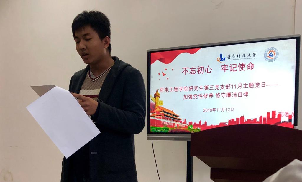 根据学校“不忘初心、牢记使命”主题教育要求,11月12日下午,best365体育官网平台研究生第三党支部在机电楼529会议室开展“加强党性修养、恪守廉洁自律”专题教育活动,会议由学院党总支副书记兼副院长、支部书记王伟主持。