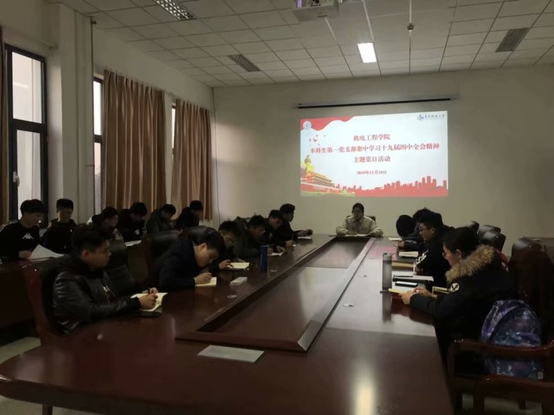 根据学校《关于持续深入开展“不忘初心、牢记使命”主题教育学习教育的通知》、best365体育官网平台“不忘初心、牢记使命”主题教育安排,11月19日下午,本科生第一党支部在518会议室开展了学习十九届四中全会精神主题党日活动,活动由党支部副书记郭佩佩主持,全体学生党员参加了活动。