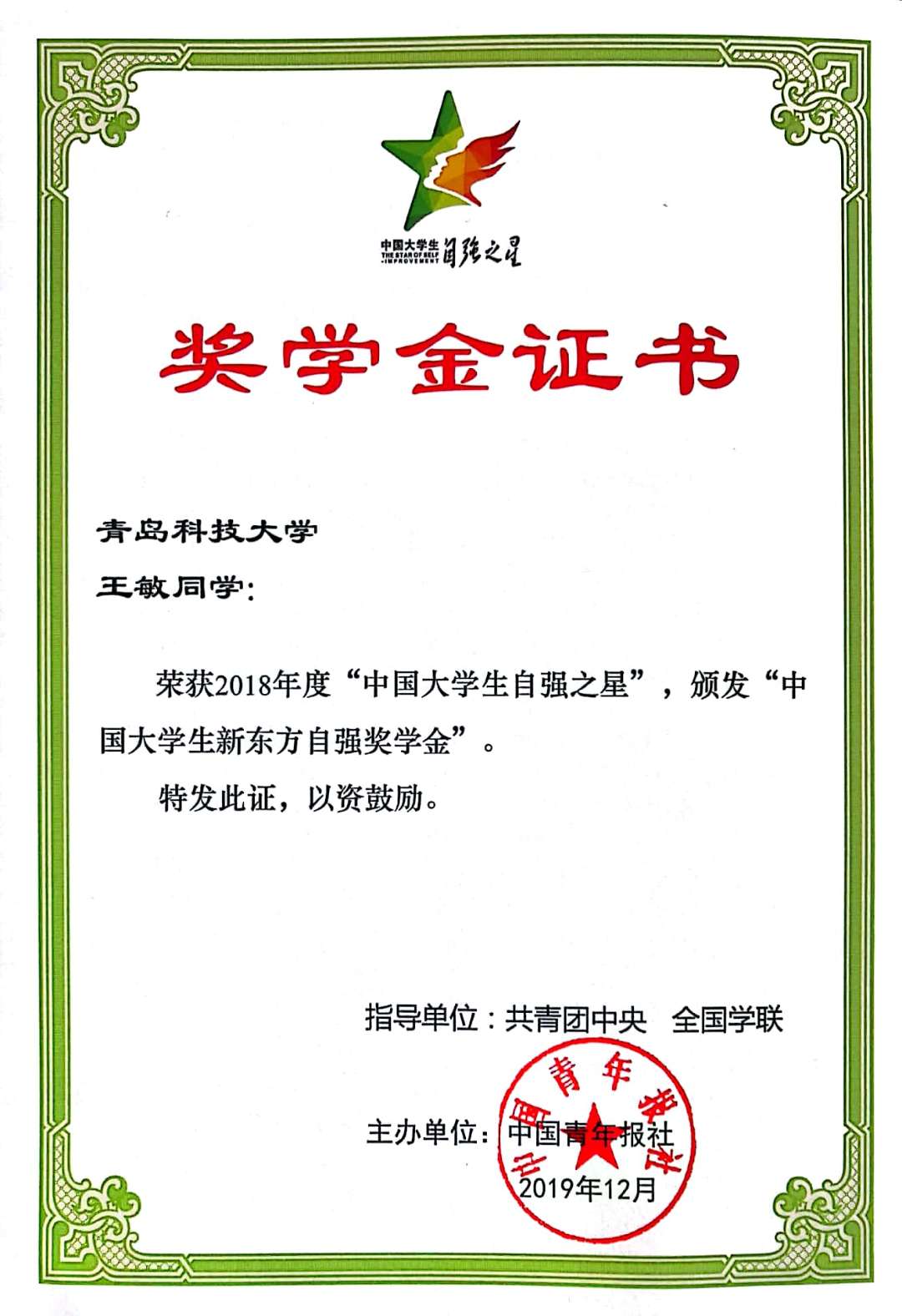 近日,由共青团中央、全国学联指导,中国青年报社主办的“中国大学生新东方自强奖学金”名单公布,原我院优秀学子、优秀校友王敏同学获此殊荣。此次活动是为深入学习贯彻习近平新时代中国特色社会主义思想,在当代大学生中树立一批可亲、可敬、可信、可学的榜样,进一步培育和践行社会主义核心价值观。