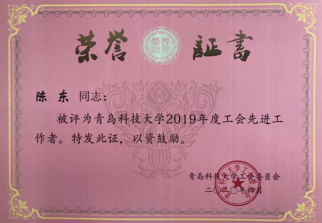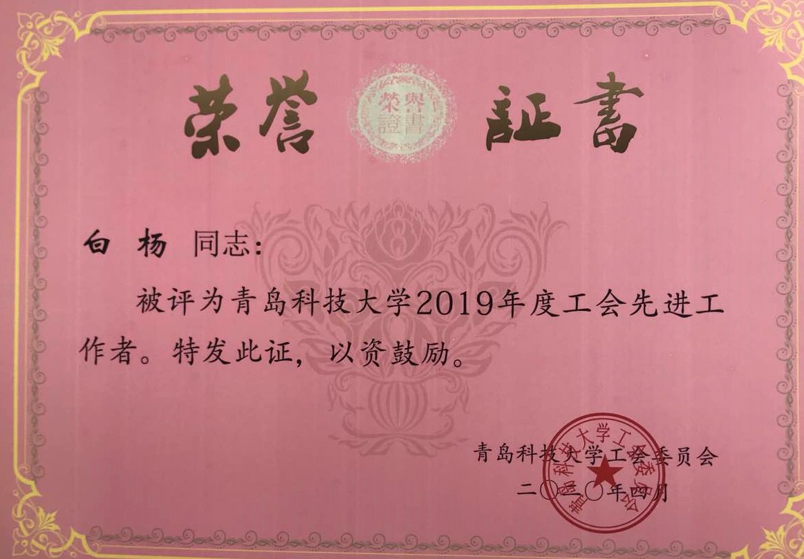朱惠华、张莹、曹科伟、孙坤岩、白杨、陈东、张琳、张猛老师荣获“2019年度工会先进工作者”;
