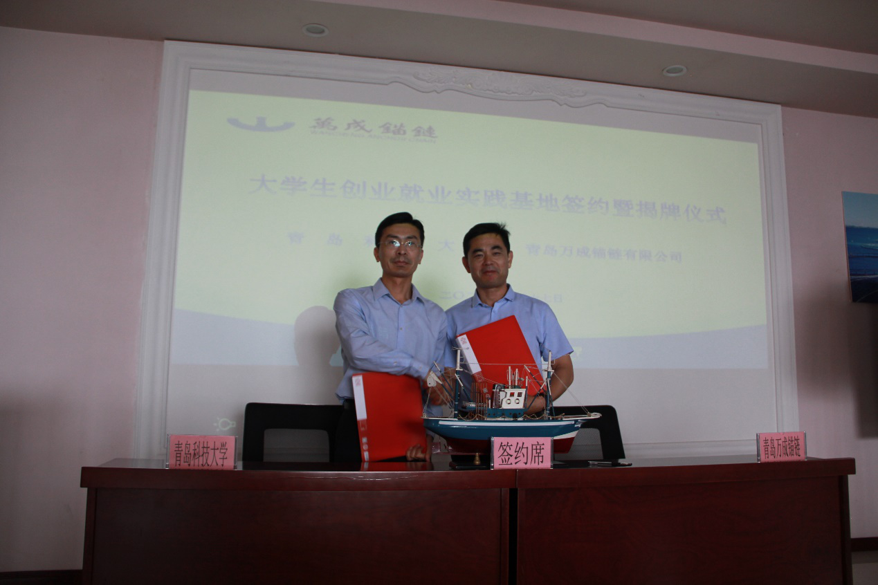 6月17日,best365体育官网平台、青岛万成锚链有限公司共建大学生就业创业实践基地揭牌仪式在万成锚链公司举行举行。best365体育官网平台党委书记孙立军、青岛万成锚链有限公司董事长仲辉、学院党委副书记肖强、副院长张卫锋、万成锚链执行总经理王吉强,副总经理、业务中心经理马静、行政人事部经理山长海、销售大区经理宋修鹏等出席签约揭牌仪式。