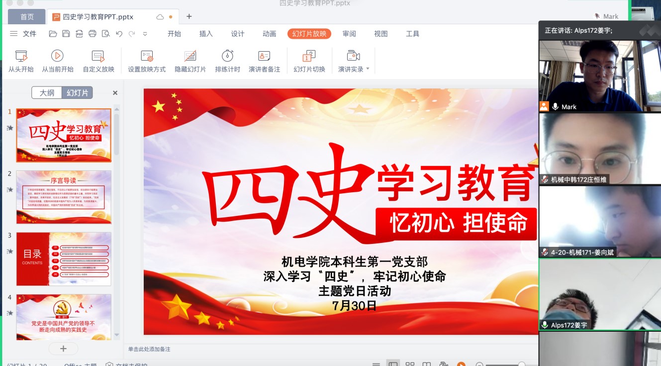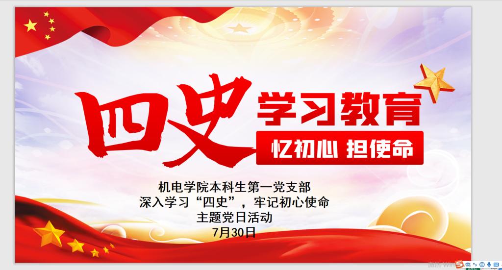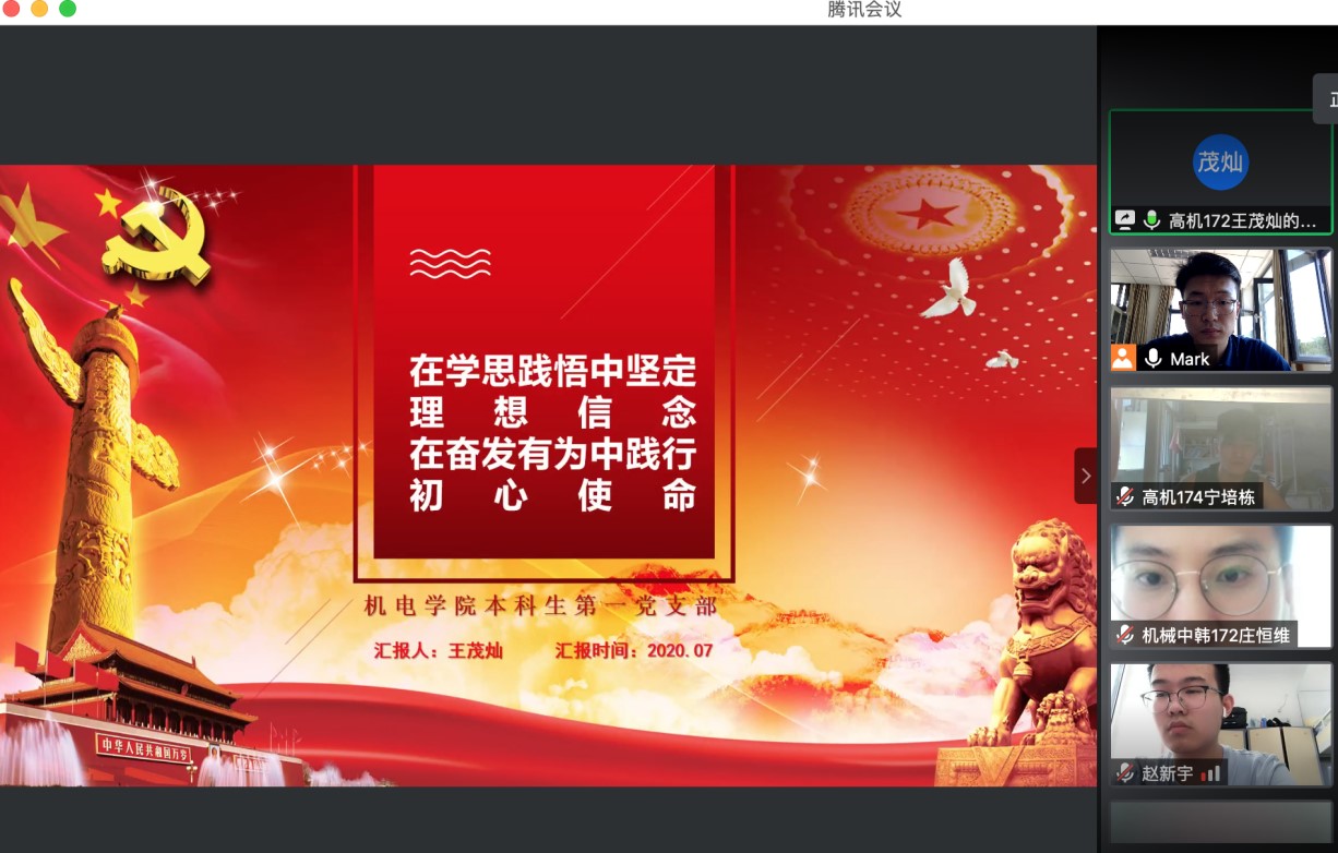 学好党史、新中国史、改革开放史、社会主义发展史是每一名党员的必修课。为学好学透历史,以史为鉴,推动全体党员践行初心使命。7月30日上午,机电学院本科生第一党支部召开了主题为“深入学习四史,牢记初心使命”的线上主题党日活动。本科生第一党支部全体党员参会。会议由王玉凯老师主持。