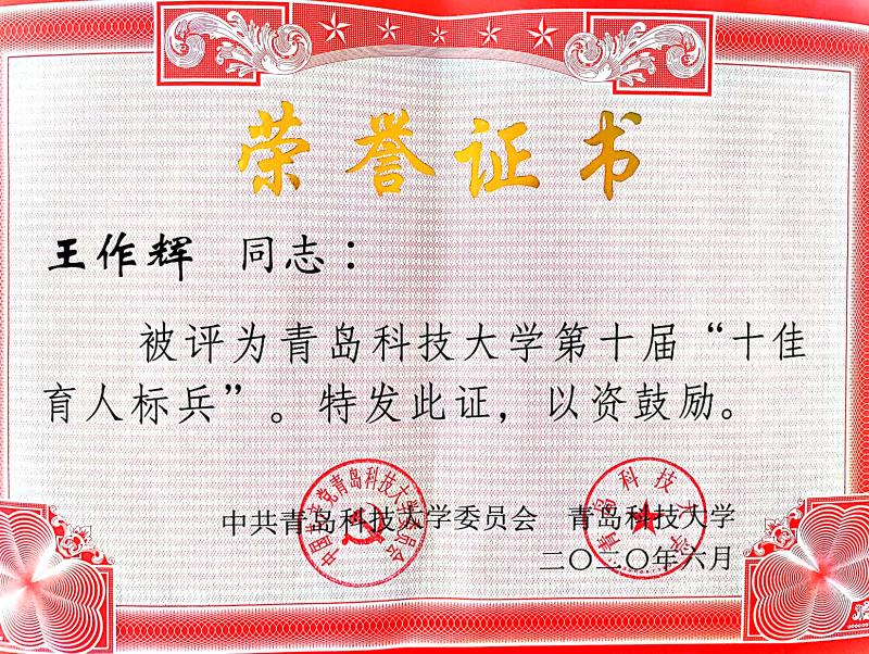 机电学院分团委(学生工作办公室)荣获“十佳师德建设先进集体”荣誉称号,best365体育官网平台团委书记兼学办主任王作辉荣获“十佳育人标兵”称号。