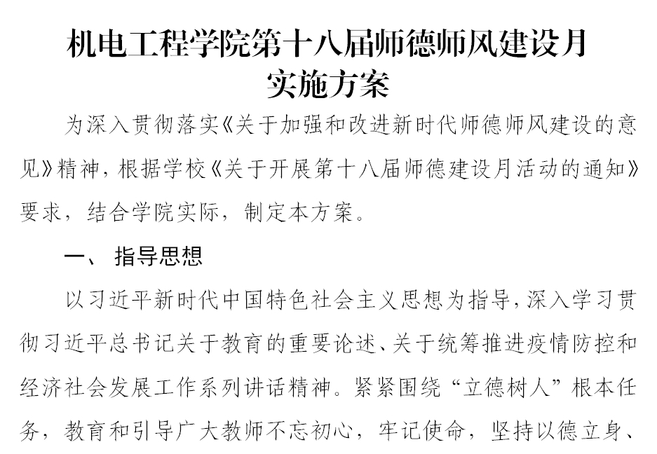 为深入学习贯彻习近平新时代中国特色社会主义思想,落实立德树人根本任务,深化师德师风建设,全面提升教师思想政治素质和职业道德水平,根据学校第十八届师德建设月活动安排,机电学院集中开展了“践行使命勇担当 助力科大新发展”师德师风建设系列活动。
