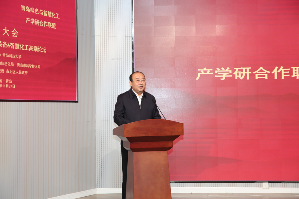 李勇向两个联盟的成立表示热烈的祝贺,向前来参加会议的各位领导表示热烈的欢迎。他指出,智能制造与化学化工相关学科是我校优势特色学科,为我国特别是山东省的机械、化工、制药行业培养了大批杰出人才。学校将充分发挥两个产学研合作联盟的桥梁纽带作用,积极打造成由“政府主导、行业引导、高校与企业合作共建”的“科技+孵化+转化”产学研协同发展机制,为青岛市以及山东省机械与化工行业注入源源不断的生机与活力。