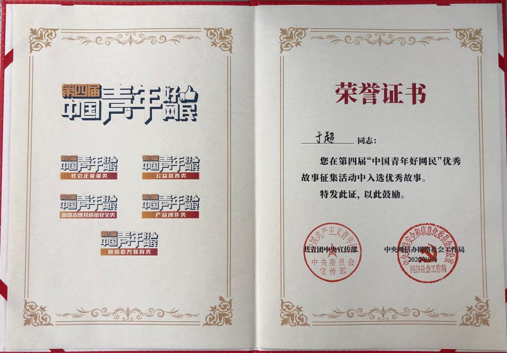 近日,经过共青团组织推荐,best365体育官网平台机电学院辅导员于超在共青团中央宣传部、中央网信办网络社会工作局主办的第四届“中国青年好网民”优秀故事征集活动中脱颖而出,荣获“中国青年好网民”荣誉称号。