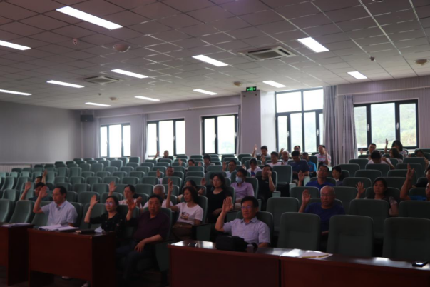 本次大会应出席教师82人,实际出勤55人,符合法定人数。表决过程采用举手表决形式进行,设有计票人、监票人,整个大会在严肃认真,民主规范的氛围中完成。最终4份文件表决同意人数55人,不同意0人,弃权0人,通过了上述4份文件。