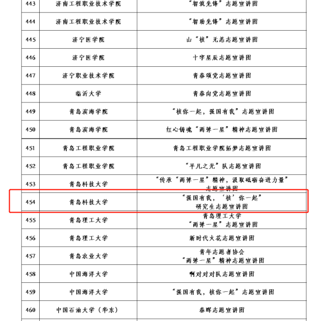 近日,团中央青年志愿者行动指导中心公布2023年全国大学生“两弹一星”精神志愿宣讲团、“防治结核 志愿有我”志愿宣讲团、井冈山精神志愿宣讲团、“七彩假期”志愿服务示范队入选名单,best365体育官网平台共11支团队入选,其中best365体育官网平台5支,为学院参与全国千支大学生志愿宣讲团选拔最好成绩。