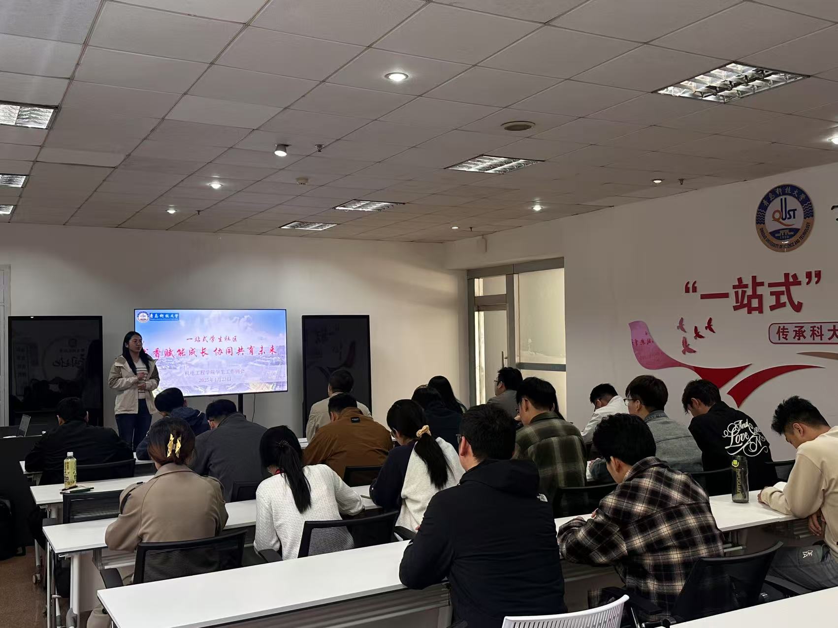 4月23日,best365体育官网平台在崂山校区“一站式”学生社区服务大厅学业发展中心组织开展“书香赋能成长、协同共育未来”学生工作推进会。全体专兼职辅导员、学生组织代表、党员代表参加会议,会议由辅导员崔瑛主持。