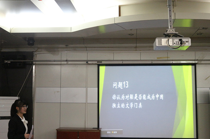 比赛共分为三个环节。第一环节由选手抽签决定自己的出场顺序,并回答赛方所提供的国学知识问题。赛方给出的问题全面而深刻,准确的考查了选手们的基础知识和文化功底。18位参赛选手在回答完所有题目后,比赛来到了紧张刺激的第二环节,选手分别上台对古今往事发表自己的见解。他们妙语连珠,既能够准确地捕捉到题目的关键之处,又能发挥联想与想象,在不同的历史情境下分析历史局势,为在场观众带来一场别开生面的精彩表现。在评委统计选手成绩的同时,学习部为在场观众播放了我国第一部纪传体通史——《史记》的诞生历程,在场同学被深深吸引。比赛到了第三回合,选手们仅有四十秒的时间,答对五道题才能顺利过关。比赛的最后,由国学达人挑战赛总冠军蔡新明为广大选手和观众总结了本次比赛并谈了自己的经验,比赛在观众的掌声中顺利结束。