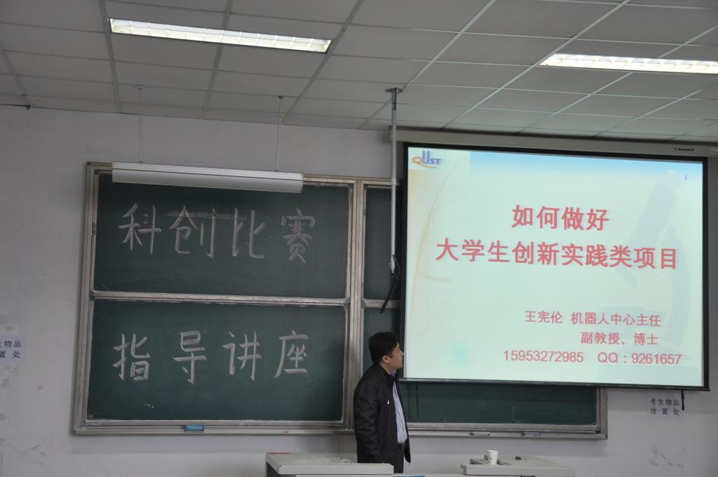 4月21日上午9:00,由机电学院科技创新协会组织举办的科创比赛指导讲座于弘毅楼E区103教室举行,机电学院机器人中心主任王宪伦亲临现场指导,讲座吸引了广大科技爱好者积极参加。
