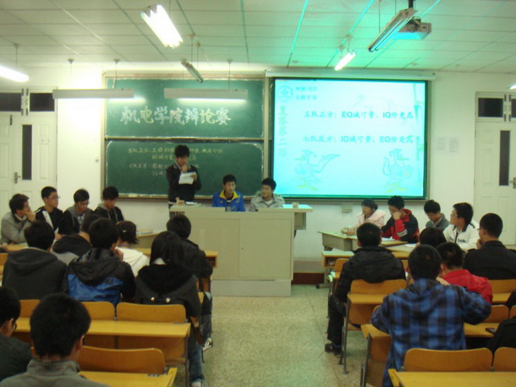 11月21日晚,由机电学院学生会学习部举办的机电学院2011级年级辩论赛复赛在高密校区2号教学楼101教室举行。机电学院分团委秦洪庆老师,机电学院学生会主席团成员、各部部长担任比赛评委。