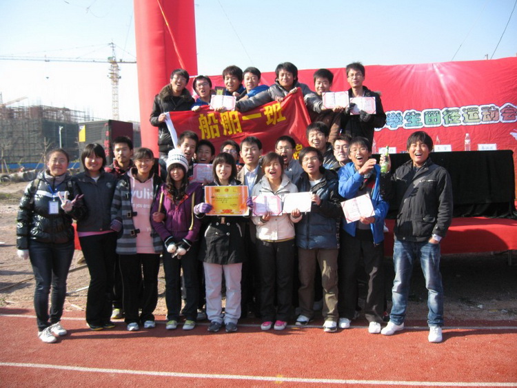 11月19日-20日,由机电学院学生工作办公室主办、学生会体育部承办的机电学院2011年学生田径运动会在高密校区二期新操场举行。机电学院22个班参加此次运动会,船舶111班经过两天的艰苦拼搏,用泪水与汗水换来了辉煌的成就,喜获团体总分第一名。