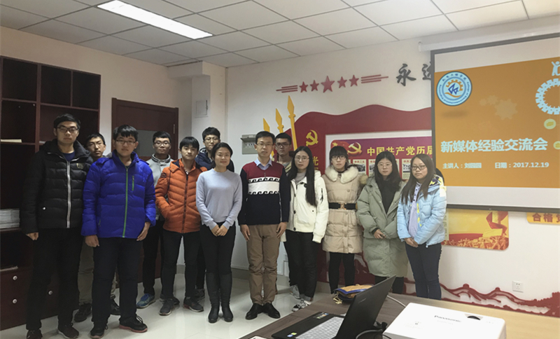 机电学院新媒体经验交流会于12月19日下午14:30在机电大楼党建活动室D3-505召开。我院有幸邀请到校宣传部刘园园老师(科大官方微信指导老师)和机电学院分团委逄柏鹏老师与同学们进行经验会谈。