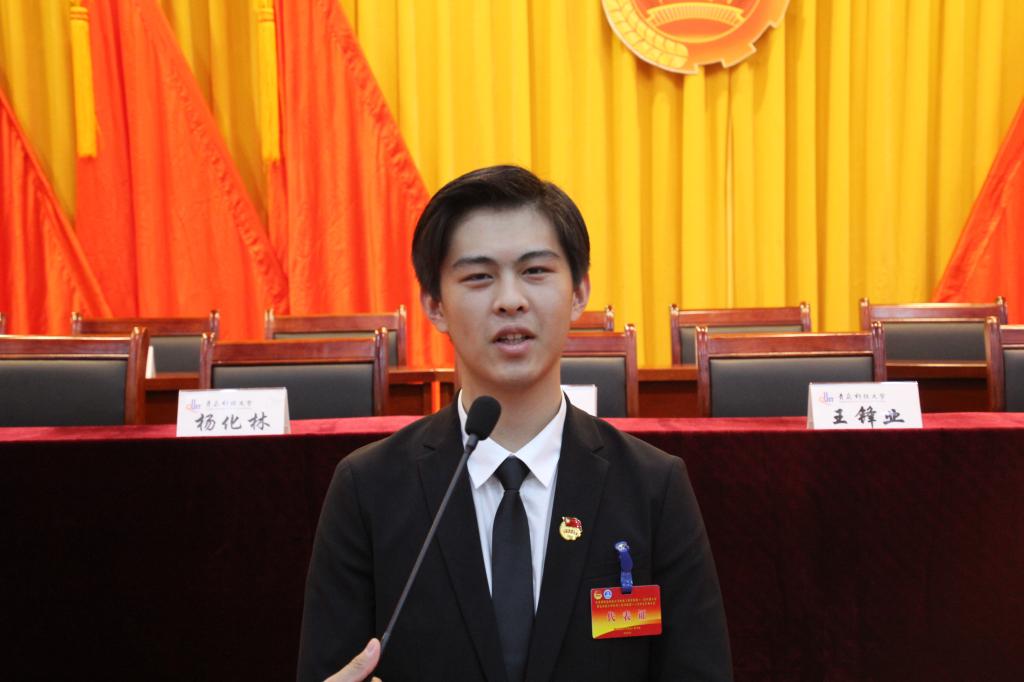 我是机电学院装控174班的杜张子阳,很荣幸能成为学生代表参加此次双代会,这既是一份荣誉也是一份担当。双代会是学院联系学生的纽带和桥梁,是学生参与民主管理和民主监督的基本形式之一,我将履行好义务,贡献自己的一份力量。最后,预祝大会圆满成功。
