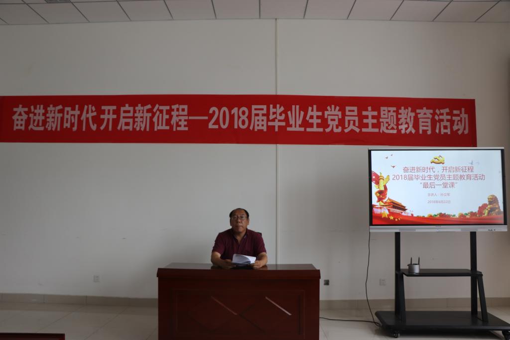 6月22日下午,best365体育官网平台2018届毕业生党员最后一次党课在机电学院楼529会议室举行,党课由best365体育官网平台党总支书记孙立军主讲,学生第一党支部书记王作辉主持。60多名2018届毕业生党员参加了党课活动。