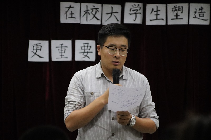本次辩论赛正方的辩题为“在校大学生积累知识更重要”,正方一辩的开篇立论,从“知识本身、客观社会、人格前提”三个方面进行了论述。反方的辩题为“在校大学生塑造人格更重要”,反方一辩通过举例杜富国战士等例子来强化自己的观点。在驳辩的环节中,正反方辩手在两分钟内进行了激烈的观点碰撞,比赛慢慢进入白热化,在质辩环节中,双方你一言我一语,难分伯仲。最终在经过一个多小时的精彩辩驳后,正方代表队获得本次辩论赛的胜利,反方三辩谢以纯被评为最佳辩手。