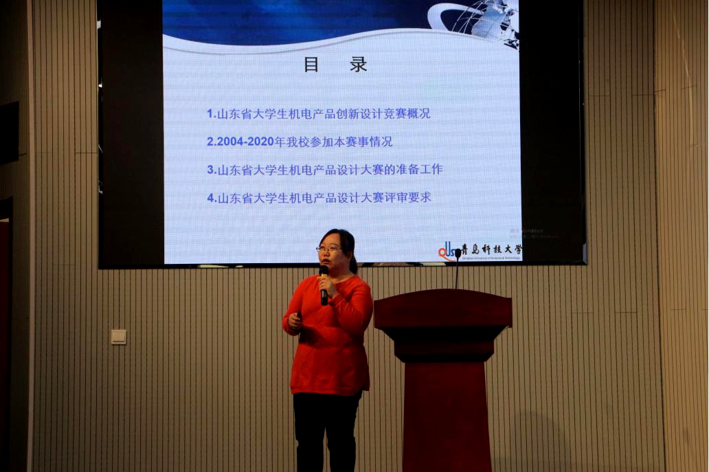 本次活动中,付平老师进行了主题为“创新承载梦想,实践成就未来”的山东省大学生机电产品创新竞赛经验传授,分别从大赛概况、我校大赛参与情况、大赛准备工作和大赛评审要求四个方面进行了经验总结。其中,付平老师讲到,参赛同学需要提交竞赛产品的设计说明书以及实物功能介绍影像等一些材料,同时也建议同学们在赛前定要做好充分准备。随后,机电学院科创部程建华同学从竞赛概况和如何备赛两方面进行了大赛经验分享,并建议同学们认真研读大赛的官方文件以更好地准备大赛。