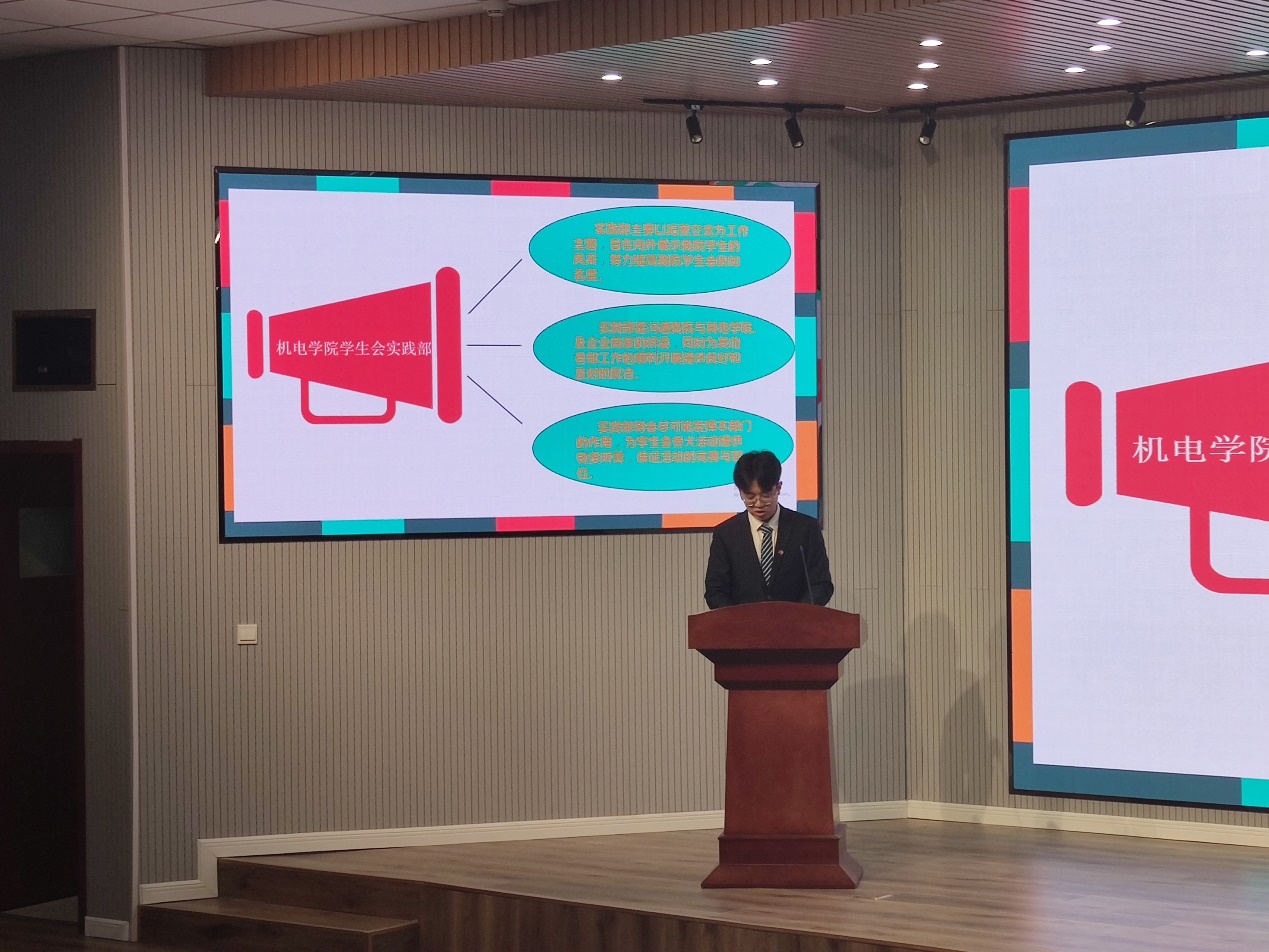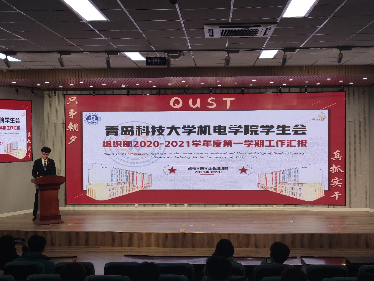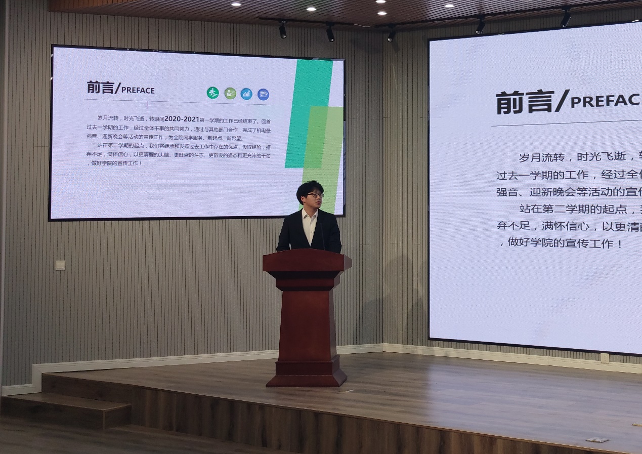 会议第二阶段,为全面落实2020-2021学年度第一学期机电学院学生会的工作开展情况,各部门针对本部的工作情况面向学生会全体同学进行述职汇报 。